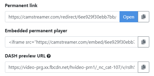 Embedded permanent player – a player for embedding video on your website; it always shows the current live stream