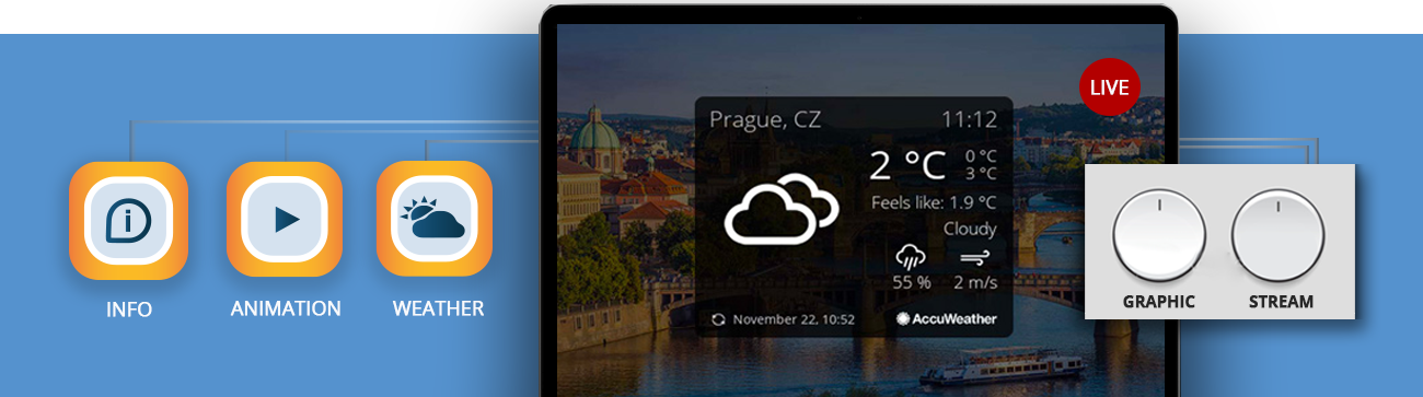 Tip: You can use the graphics button before you start live streaming, during the stream (mainly live sports streams), or when you change a topic or subject (e.g. in an online classroom - chemistry graphics, mathematics graphics, etc.).