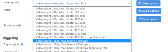 4. Select the video’s resolution quality (ideally 1080p). Here you can choose from three options – individual options can be changed in STREAM TYPE in the CamStreamer App.