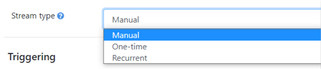 Tip: The availability of each option depends on the type of your streaming service. Services for streaming to YouTube and Facebook offer one-time and recurrent events as a special service, which can be chosen by clicking on ADD NEW SERVICE in the options. Other services offer all triggering options in one – you can set them up after selecting services in the TRIGGERING AND STREAM TYPE section.
