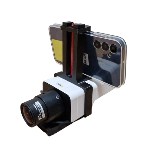 The Axis P1378 IP camera mounted on a tripod provides high-quality footage of the match and can be remotely controlled via cloud. In addition, a smartphone is mounted in a custom 3D-printed holder running Tiny Cam, which gives a near-zero-delay live view helping the field operator with real-time monitoring.