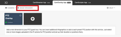 8. Setting up this service is very simple. Start by uploading the images you want to use onto the camera. You can do this by clicking on the Image Manager. Here you’ll see a list of the images that have been uploaded to the camera. Upload by selecting Add New Image.