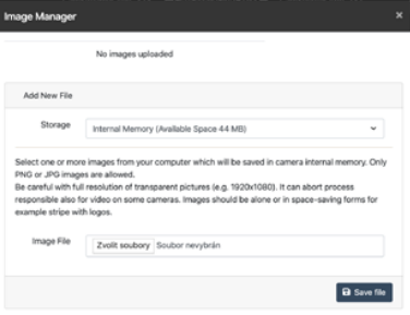 Tip: You can upload images directly into the internal memory of the camera, but some camera models have quite limited memory – in this case, you’ll have to have an SD card in the camera that you can upload your images to. When uploading images, select their location in the camera in the Storage option.