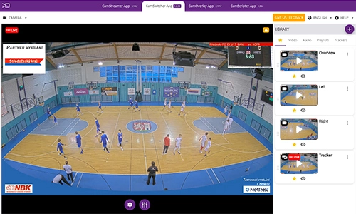 CamSwitcher App runs on your IP camera without any extra hardware required. The app fetches RTSP video streams from the connected cameras and switches among them. Additionally, you can mix in audio and video clips stored on an SD card. The mixed video feed is ready to be easily streamed via CamStreamer App.